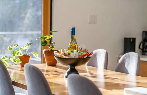Walk in the front door to be greeted with a gorgeous modern esthetic at this beautiful contemporary home. The open floorplan includes a large chef's kitchen, two large spaces for dining that can each seat eight people, and two story living space with a fireplace! On the first floor there is also bedroom 1 and with its en suite bathroom, a coffee bar area, and a half bathroom. Walk up the staircase to the second floor where you will find bedrooms 2-4, a full bathroom, and bedroom 5, which is a large bonus and bunk room with a sectional sofa, foosball, and ping pong table!