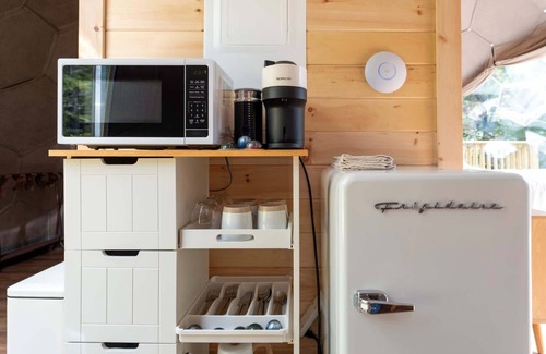 Escape to this stylish, modern dome nestled in the quiet woods of Sullivan, just minutes from the Schoodic Peninsula and Acadia National Park. With sleek design, clean lines, and floor-to-ceiling windows that bring the outdoors in, this retreat offers comfort, simplicity, and a strong connection to nature. Enjoy a private deck, fast Wi-Fi, and serene surroundings—perfect for couples or small families looking for a peaceful Maine getaway.