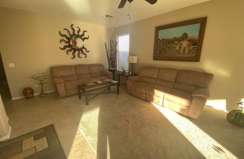 The house is on a corner lot in the Johnson Ranch golf community. Our guests have access to 3 community pools, spa, a private 9 hole golf course, over 20 parks interconnected through walking paths, basketball court and beach volleyball court.