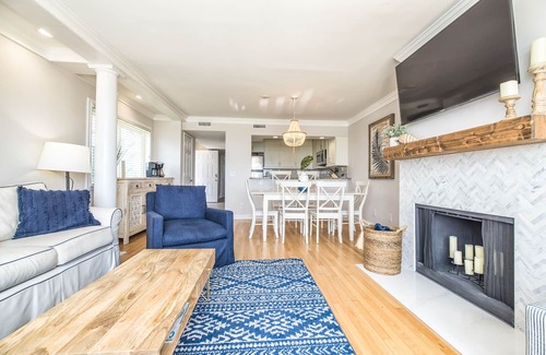 The large Ocean Front (OF) Master Suite features panoramic views of the Atlantic Ocean & WB strand with its new crystal clear oceanfront window + black-out drapes, large smart TV, and a sitting area for relaxing, reading or beach watching. If one must work while on vacation, I wouldn't want to do it anywhere else--there is a desk in the master bedroom with beautiful views of the ocean. With all HW floors & tile (no carpet) you can rest easy in this low allergen environment during your vacation. Living room/Dining Room/Kitchen are oceanfront with a 50" smart TV, library of books, board games & more for both adults & children. Convenient luggage racks are in each bedroom.