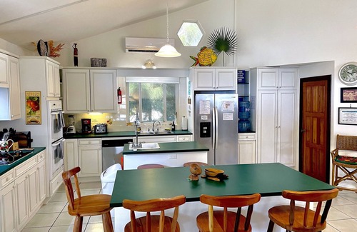 The great room offers a spectacular dining ocean view with seating for ten plus fully equipped kitchen, living room with large smart TV and den with 2 twin beds that also can be converted to a King . Wi-Fi streams throughout the entire house as well as Cable TV and Netflix.
