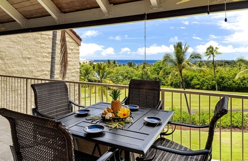 Boasting top-floor views of the ocean and golf course, this dreamy, loft condo is your ticket to Hawaiian paradise! Just seven miles from downtown Kailua-Kona, this rental is walking distance to Keauhou Bay and a short drive from Kahalu'u Beach. Floor-to-ceiling windows provide stunning views and strong natural lighting throughout the home. A private lanai offers outdoor living at its finest, complete with a gas grill for island-style barbecues. Modern essentials include free WiFi and a private washer/dryer. Onsite perks include a pool and spa.