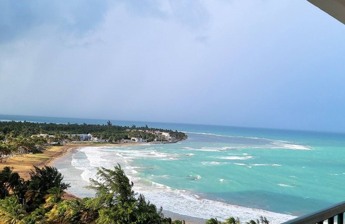 Gorgeous newly remodeled this Dec. Full one bedroom in the most wanted location in Luquillo,Playa Azul view and El Yunque to the left! This apt. sleeps FOUR comfortably,with a king bed in bedroom AC,and two full size Twin beds in the trundle in the living room.