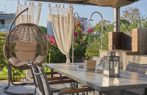 Villa Kirki is a villa which unfolds in two levels. With its own private pool and a 25m² outdoor dining area this villa can host you, who enjoy being by the pool all day long. The pool has also a jacuzzi which can be used as kid's pool as well and it is heated on demand. The great view from the huge balcony gives you the opportunity to spend many moments of your relaxing vacation there. The interior design is minimal yet elegant in order to satisfy even the most demanding guests. All rooms are equipped with SMART 4K TVs in order to make sure that your sleeping and movie night experience will be far beyond your expectations.