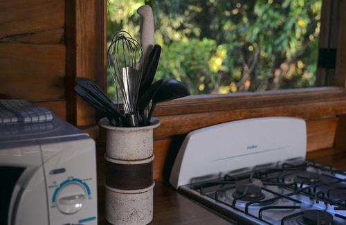 Villa Mangos is a two-story villa at the stunning Calamocha Lodge, thoughtfully designed to create a deep connection with the magical jungle which surrounds it. The upper floor offers a large bedroom with a king bed and two built-in twin beds, all facing an expansive entrance that opens onto a balcony with incredible ocean views. On the ground level, you'll find an open living area and kitchen with all you need to cook at home. Breakfast, Wifi, and daily housekeeping is also included.
