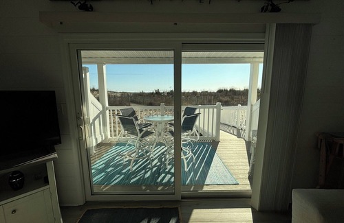 Relax and unwind in this charming oceanfront studio, just steps from the sand in North Ocean City! Located on the first floor, this cozy efficiency offers breathtaking beach views, a private ocean view deck with patio direct beach walkout, and all the comforts of home. Inside, you'll find a queen bed, sofa bed, full kitchen with modern appliances (including a dishwasher and microwave), updated bathroom, and convenient washer/dryer. Stay cool with AC and enjoy entertainment on the 43-inch smart TV with Netflix, Hulu, and more.