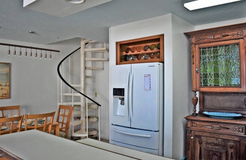 Upstairs is a loft area with a queen size bed, desk, closet and armoire, and a full bathroom with stall shower. Parking is easy, you have two assigned covered spaces directly under the condo. In the carport we also have a wooden storage bin for your beach gear and plenty of room if you decide to bring your bikes or rent a golf cart. The beach access has an outdoor shower to rinse off and at the end of the parking lot is a charcoal grill you can use.