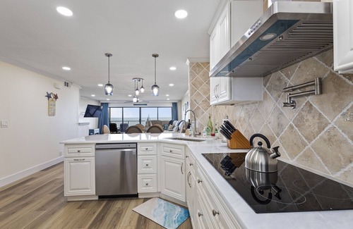 Comes with private beach access just steps away, plenty of parking, heated community pool, Wi-Fi and cable television. You'll love spending time on the large balcony and enjoying the striking panoramic ocean views from the kitchen, dining area, living room, and master bedroom.