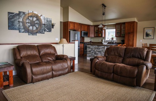 This rental is equipped with a gourmet kitchen and tastefully decorated living and dinning room that overlook the ocean. Indoors you will find Alaska treasures and reading material throughout the house. The bedrooms are quiet with darkening curtains for the most blissful sleep.