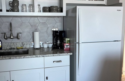 Enjoy a sunrise over the worlds most famous beach. Bedroom has 2 queen soft plush beds with removable topper to adjust to your liking. A dresser, nightstand with lamp, full length mirror, 40 " TV and closet. Living room couch is a full pull out sleeper and sleeps 2. Fireplace with 55" smart TV above it. Fold out table for working or eating seats 3. Kitchen has a 3/4 refrigerator with ice maker, microwave-confection-bake-broil all in one, drip coffee maker, 2 counter top burner, can opener, dishes, glassware, pots & pans, silverware, mixing bowels, utensils, toaster, dish towels and dish strainer. For your convenience there is coffee, tea and dish soap provided for you use. Bathroom has soft close shower doors with built in bench and niche for soap and shampoo, hair dryer, towels, and toiletries. In the closet there are beach towels, beach chairs, bogie board, umbrella, kids sand toys and an iron with ironing board. Balcony has table and chairs for your relaxation. I have put a portable AC unit in the bedroom for your comfort should you need it. I hope this will not be in your way,