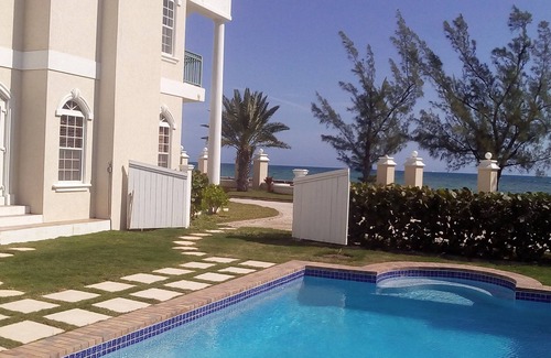 Truly an architectural gem. Two spacious balconies and a large porch to view the ocean from. Enjoy warm sunny days on the beach or lounging by the large saltwater swimming pool. Minutes from the spectacular Atlantis Casino and Downtown, walking distance to the bus stop and grocery store. With activities like reef snorkeling, jet skiing and tours of the island you'll never get bored. Or just relax in the jacuzzi, have a home cooked meal, or chill out with a tropical drink on the open air balcony while watching the ocean scenery. Have fun!