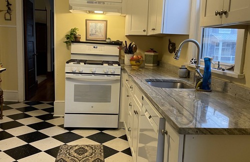 The perfect location! Close enough to walk to everything, park your car and enjoy! Two great protected beaches and a surf beach (4 beach tags included). Fun for the kids, yet peaceful for you. Relax and enjoy the charm of Ocean City, while enjoying the cool breeze under the awnings on the front porch swing, or in the fenced-in back yard. The beach is just a block and a 1/2 away! We have the best location and value on the island (7 day minimum). Our home is within walking distance of everything! Close to the boardwalk shops without the noise of downtown. Walk to Library, community/fitness center, Boyars market, CVS, beach, and the downtown restaurants and shops. Our pet and family-friendly common area has an outside shower, outside furniture, picnic table and gas grill. The fourth bedroom has a private porch (with awnings and small ocean view) perfect for watching the city's firework displays. Our home is comfortable, clean, and attractive, the perfect place to spend your vacation and build memories. Flat screen TVs and WIFI, one parking spot. Fully equipped, newly renovated (2019) kitchen, washer/dryer, dishwasher and we even plant a small garden for fresh jersey tomatoes! Come, enjoy!