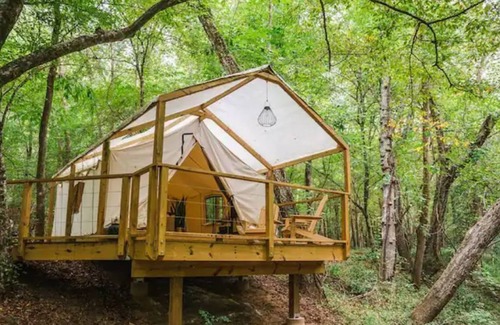 The River Tent @ StayCamp is an off-grid luxury camping experience. With total seclusion in mind we situated the tent at the back of our private 44 acre property overhanging your very own river. Hike along the trails, relax by the waterfall, or take a nap in a king size bed. Use the supplied cookware to prepare a meal over an open fire, or order out at the many local restaurants all within a 10 minute drive.
