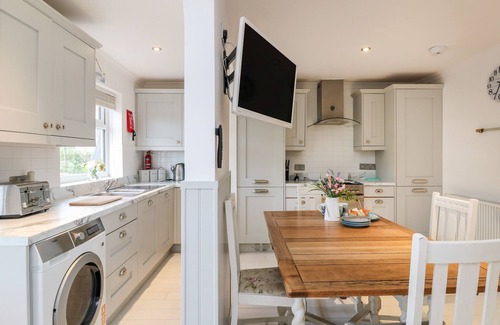 Amenities: Central heating, underfloor heating in the shower room. Electric oven and hob. Dishwasher, washer/drier, fridge/freezer, TV, DVD, Bluetooth speaker. WiFi. Fuel and power inc. in rent. Bed linen and towels inc. in rent. Cot and highchair available. Off road parking for one car. Sun deck with furniture. Sorry, no smoking. Shop and pub 5 mins walk. Sea 2 mins walk. Property accepts one pet at £25 per week. Note: This property sleeps maximum of 4 adults