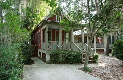 The Chic Bluffton Cottage is a one bedroom, one bath unique home in the heart of Old Town Bluffton. The handcrafted home features wood pine floors and walls with a solid tin roof. The cottage has an open living space and fully equipped kitchen with all the ameneties and also features a stackable washer and dryer for guests to use during their stay. Beautiful front porch to enjoy lowcountry evenings on. Bikes and Golf carts are also available to rent from a local company. You will be in walking distance to Calhoun street and the promenade featuring great restaurants and shopping. Come enjoy Farmers markets every Thursday where you can get fresh fruits and vegetables! This unique location allows you to walk to almost every unique sight that Bluffton has to offer.