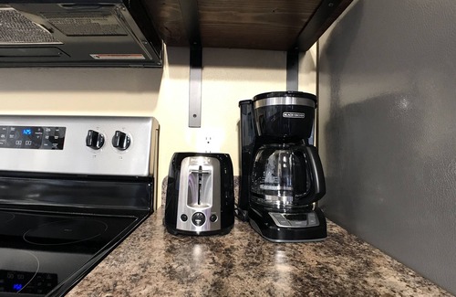 The full kitchen includes all the basic cooking utensils you'll need with dining space for the group, the living area has comfy couches to enjoy the fireplace, or stream your favorite shows on the 50" smart TV, enjoy free programming on the Roku channel or feel free to sign in to your account on subscription based channels. (Just be sure to sign out before departing).