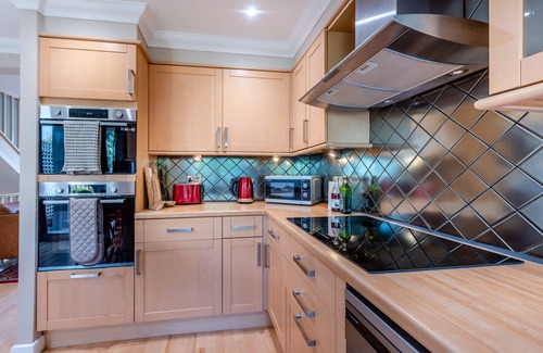 Electric double oven and induction hob, dishwasher, microwave, fridge, freezer and wine cooler
