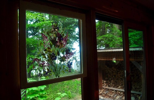 This artistic, contemporary home overlooks a breathtaking sugar sand beach right out the front door. It is shaded by beautiful towering trees, flowering gardens, and a zen rock garden in the charming town of Omena (north of Traverse City). 2 bedrooms plus loft with futon and 2 bathrooms. Spacious living room and kitchen/dining area. On very quiet street.