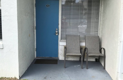 New upgrades everywhere: new seawall, deck and 2nd pool is almost complete. All new queen beds, sleep sofa and updated bathrooms. This cute 1 bedroom, 2 full baths, sleeps 6. Bedroom with 2 NEW queen beds and a NEW queen sleep sofa. There is also a roll-away bed that is automatic. Kitchen with almost everything you need: cable and internet access. Just steps to the beach and 2 pools, north side is a heated pool and is OPEN. (The other pool is not open at this time, due to the hurricanes but construction is almost complete. Great for the Space Rocket launches and special events. The beach is beautiful and you can drive ON the beach or just watch them drive on beach from back porch areas. It’s also a short walk to the Pier and the famous Ocean Deck bar and grill! This place is a real Jewel!