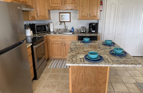The adjacent kitchen area has everything you might need to cook that fresh caught fish! There is a granite bar that is great for eating, games, and studies. It is furnished with all appliances.