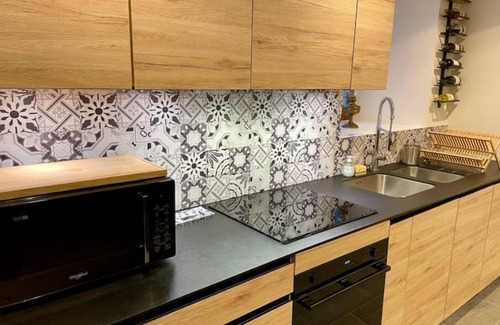 - on the ground floor: a terrace with table/umbrella/BBQ, a large kitchen-dining room with fireplace, a master suite (160 x 200 bed) with toilet and SBD, a laundry (machine and dryer)