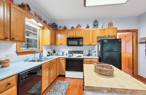 You will think it is spring every season of the year. The sunflower and bluebird stained-glass with matching decor enhance the beauty of this sunny bright, open loft country cabin, sitting on a hillside with a secluded back deck. Cabin offers two bedrooms with high-boy beds, 2 full baths with an oversized jacuzzi tub. Lots of antiques and signed & numbered local art. Other amenities include a fire pit, wood burning fireplace, Wi-Fi, and free access to the Wild Laurel Swimming Pool and 24-hour Fitness Center, located only two miles away.