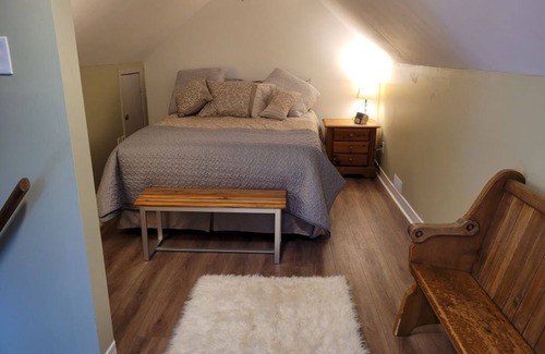 1880 Limestone historic building, in center of the town. No worries, park, walk, enjoy all ammenitiesat your doorsteps. Water view from the sidewalk. Enjoy, cycling, scubadiving, or a pleasure walk on thhe Brock trail. See the oldest railroad tunnel in Canada or bring the kids to Aquatarium. Every weekend, there is something to do. You can drive through the 100 islands, best scenery in Canada.