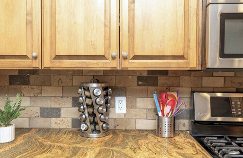 ✔ Fully stocked kitchen with pots, pans, dishes, utensils, salt and pepper, coffee, and creamer
