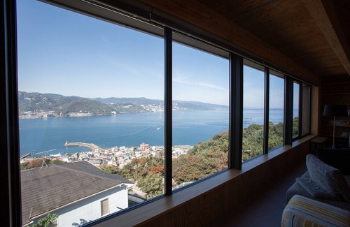 / A modern detached house stands on a hill just up a slightly steep mountain road from the town of Ajiro where dried fish is delicious When you step inside you will be surrounded by the scent of newly built wood The view from the 10 meter wide windows is breathtaking You can also fully enjoy the night view of Atami