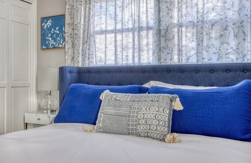 Restful primary bedroom with king bed, ensuite, and garden access