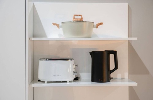 Cook up a storm in the fully stocked kitchen with updated appliances—everything you need to feel right at home.