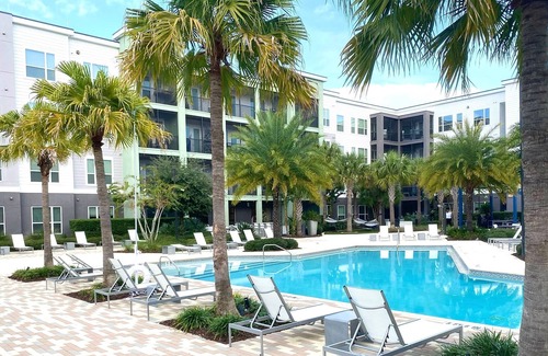 Immerse yourself into one of the most dynamic and fun-filled neighborhoods in Orlando, with our beautiful amenity offerings and spacious and thoughtfully designed apartments, you are bound to enjoy your Orlando vacation both inside and out. Relax and unwind after a day full of excitement and adventure, at any of the many attractions Orlando has to offer such as the exhilarating rides at Universal Orlando, Islands of Adventure, Walt Disney World Resorts & Theme Parks, The Eye at ICON Park, Volcano Bay, Seaworld and so much more! This exclusive 2 bedroom luxury apartment embraces every detail for comfort, convenience, and relaxation. Enjoy home-cooked meals in our state-of-the-art kitchen equipped with premium silverware and utensils. Watch and stream your favorite shows, movies, and sports on a widescreen HD tv while relaxing in the living room. Sit back and unwind with a glass of white wine on the private balcony/patio. Additional guests can enjoy a good night's rest on our included queen sized air mattress. Also included for your convenience, are a full size washer and dryer inside the unit. Enjoy free Wifi to use during your Orlando vacation at Premier Orlando Suites. Book now and enjoy a luxurious stay at one of the top-rated communities in Orlando. We look forward to fulfilling your travel and vacation needs!