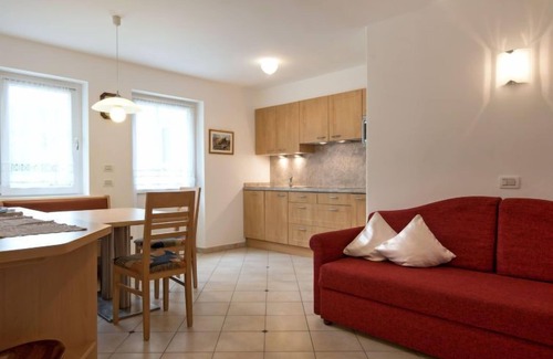 Small residence "Ornella". In the district of Pescosta 2.6 km from the centre of S. Cristina, 2 km from the centre of St. Ulrich/Ortisei, 37 km from the centre of Bolzano, in a sunny position on a slope, along the wooded area. For shared use: property with meadow, courtyard. Garden furniture, children's playground. In the house: lounge, storage room for skis, ski boot dryer. Bread roll service. E-charging station. Shop 1.3 km, bus stop 150 m, railway station "Bolzano" 40 km, outdoor swimming pool 2 km, indoor swimming pool 2 km. Golf course (18 hole) 20 km, mountain railway 2.7 km, ski lift 2.7 km, chair lift 3.2 km, ski bus stop 150 m. Well-known ski regions can easily be reached: Seceda 2.7 km, Saslong 3.2 km.