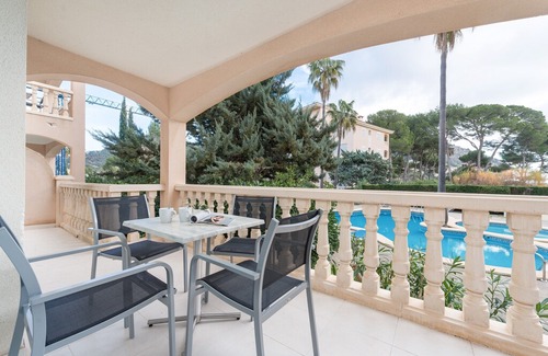 Fantastic apartment for 4-5 people, with shared pool and the beach only 340 metres away in canyamel (Capdepera)This apartment is the perfect place for a dream-like vacation. The residential complex offers a wonderful shared chlorine pool that sizes 10 x 5.5 metres and has a water depth that ranges from 0.5 to 2 metres. It's surrounded by a great lawn area where you can bask in the sun or play with your children. In addition, you find the beach just 340 metres away. So you can enjoy some wonderful days between the beach and the pool and every day come back to the private terrace of the apartment and relax with the views to the mountains and the sea at the end.Inside this apartment, located on the ground floor, you'll find a spacious and comfy living- dining room where you can enjoy your meals all together and watch the satellite TV. The independent kitchen is equipped with a ceramic hob and the laundry room with a washing machine, an iron and an ironing board. There're 2 bedrooms with twin beds, AC and closet. One of them has room for a baby cot and a high chair also is available. Moreover, we'll prepare de sofa bed in the living for the last guest. There's one bathroom with a bath and the house is equipped with gas central heating.Canyamel is a beautiful residential area belonging to Capdepera and with one of the best beaches in the area. You'll also find all services around like supermarkets, bars and restaurants. The golf course is only 2.5 km away and also the worth a visit Caves of Artà and the Tower of Canyamel.Contact the advertiser for possible additional charges.The pool is available all year round from 8 am to 11 pm. From this time, you'll be allowed ti use it without disturbing the neighbourhood.The fire place in the living cannot be used.Pets are no allowed.The holding of events is forbidden.DistancesBeach: 0.340 km - CanyamelAirport: 69.4 km - Son Sant JoanGolf course: 2.5 km - Golf CanyamelTown: 0 km - CanyamelTrain station: 27.7 km - ManacorBus stop: 0.650 km - CanyamelFerry: 44.2 km - Puerto de AlcúdiaHospital: 25.9 km - Hospital de ManacorTourist license: ETVPL/14787The Ecotasa (tourist tax) must be paid cash on site when checking in. The amount varies between 0.55€/night and guest during the low season and 2.2€/night and guest during the high season. The tax is reduced by half from the 9th day of your stay. All guests have to pay the Ecotasa, except people under 16 years. You will have to pay the deposit amount at the arrival to the owner. Reference: BN1166284
