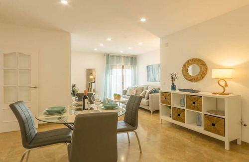 The apartment features a modern and clean bathroom, with all the amenities needed to ensure a comfortable and relaxing stay. The apartment's decor is cozy and current, with details that give it an authentic and welcoming touch. It also has central air conditioning, fiber internet and WIFI so you can stay connected at all times. Near the apartment is the Calle Sevilla Parking, which allows you to have your vehicle safe and close during your stay.