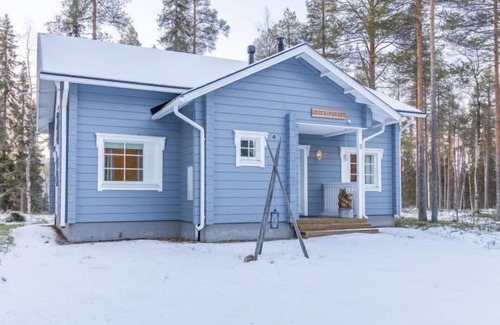 Well decorated cabin on a peaceful spot very near by all the activities of the Pyhätunturi tourist center (150km of skiing trails and snowmobile routes). You have a scenery to Pyhätunturi fell from the cabin. Children's equipment, Wifi, 2 flatscreen TVs, carport, warm room for ski maintenance, firewood is included in the price.