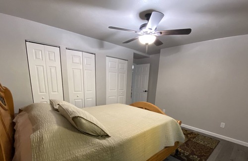 Fully renovated and furnished county home featuring fireplace (bring your own wood), eat-in kitchen with new appliances (fridge, microwave, gas range/stove, dishwasher), breakfast bar, dining room, living room, 1 master bd (queen bed) with bath (double shower heads) and 2 smaller bedrooms (1 bd w/ queen bed, another w/ 2 twin beds) with shared bath (tub/shower). Front porch, back patio, RV parking with hook ups ($75/day extra if bringing RV), surrounded by majestic redwoods, pines and oaks. 1 acre lot with graveled driveway with plenty of parking and outdoor space for games, fresh air with local views. Close to countless local trails, lakes, parks, American River, for hiking, riding, boating, kayaking, rafting, swimming. Great dinning within 15 min at historic Auburn and Colfax. Within 1hr to world class skiing, hiking, and lakes in the Tahoe area. Less than 5 min off I-80. Weimar University is a mile away with ~15 miles of hiking trails, vegan cafeteria; minutes to North Fork of American River (i.e. Ponderosa/Codfish Creek Falls Discovery Trail, Mineral Bar Campground, Steven’s Trail) and Bear River (Bear River Park and Campground; Rollins Lake); Auburn, Colfax, Grass Valley are nearby with numerous parks (i.e. Auburn State Park, Cronan Ranch, Hidden Falls), lakes, wineries, eateries and old mines (i.e. Empire Mine). Drive up about 1hr to skying, Pacific Crest Trail, Tahoe, and all that has to offer.