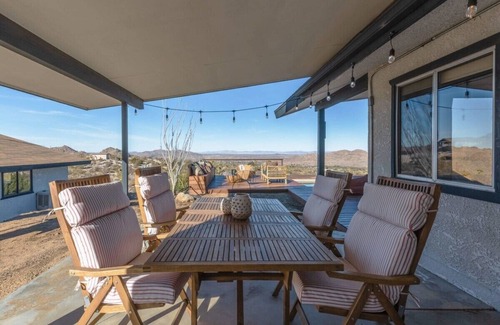 Overlook Joshua Tree is a revitalized ranch home featuring forever views of the national park from a gorgeous pool & deck. Set in a secluded hilltop location, this home can accommodate and entertain 6 guests & has a decorative fireplace & pit. Premium amenities, big windows & Southwestern decor makes you feel a powerful connection to the local landscape.