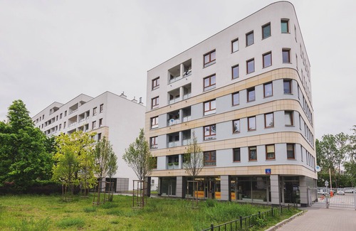 Apartment located at Namysłowska Street, 300m from Haller’s Square (Plac Hallera) and 200m from Rondo Starzyńskiego. The street is quiet and green, and the apartment is in a new building with underground parking.