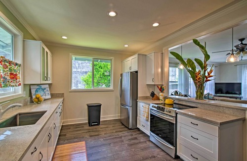 Bask in the paradise of the Big Island at this gorgeous Papaikou home! This 3-bedroom, 2-bath vacation rental features an updated interior, a spacious kitchen, and a location in proximity to captivating beaches and parks. Grab those surfboards and ride the waves of Carlsmith Beach Park, explore the scenic beauty of Hawaii Tropical Botanical Garden, or drive less than 5 miles to the town of Hilo for the best local fare in the area. Whichever you choose, you're guaranteed an epic island adventure!