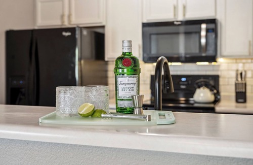 KITCHEN: Fully equipped kitchen with a dishwasher, microwave, cooking essentials, dishware/flatware, spices, complimentary coffee, creamer, tea and sweetener.