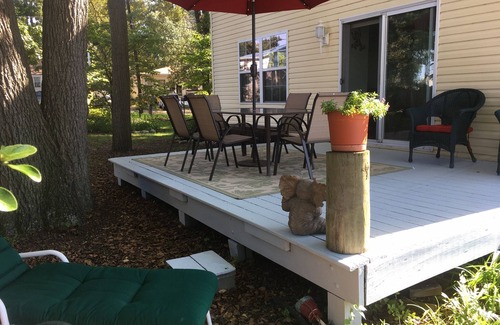 Next door to White Rocks Marina and Mike's Crab House North. Outdoor deck for family entertaining with outdoor grill. Full kitchen, dining room with seating for family. Views of Rock Creek from all rooms and deck. Compass Point Golf course on way to house. Mini golf and other parks nearby. Closet full of fun games.