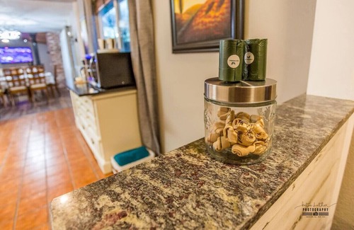 This four bedroom home (with two master suites) is an absolute dream come true! Bring the whole family, including your furry friend! Enjoy the game room and the HUGE family couch but don`t let the cold weather stop you from spending time in our beautiful outdoor space! We`ve not only got a beautiful fire-pit perfect for roasting mallows and making s`mores with the family but we`ve also provided two outdoor space heaters and plenty of throws to bundle up and feel all of the cozy winter feels!