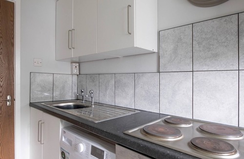 Modern, Well-Equipped Kitchen: The kitchen has everything you need, including an electric cooker with four hobs, a fridge freezer, and a washing machine—perfect for those who love to cook.