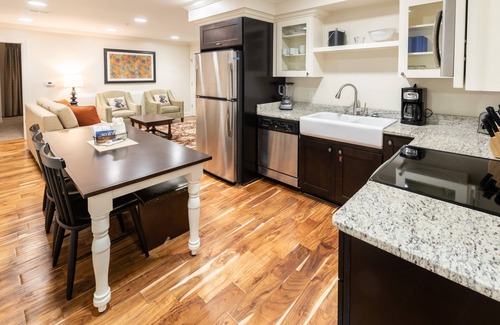 This suite is ornately designed with the fusion of modernity and the 'classics' that leaves the impression of 'majestic living'. Additional room amenities include: cable television, coffee maker, dish washer, dvd player, hair-dryer, Ice Maker, internet (wi-fi) , Iron/Ironing Board, microwave, refrigerator, stove/range, and a Wheelchair Accessible.