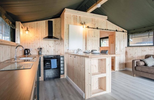 Paviland - Safari Glamping Tent - Llangennith is located in Llangennith. Paviland - Safari Glamping Tent - Llangennith provides accommodation, featuring Kitchen, TV, Ocean View, among other amenities. This RV Rental features Kitchen, TV, Ocean View, to make your stay a comfortable one.