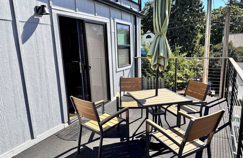 a modern second-floor retreat in Moscow’s charming historic district. This thoughtfully designed two-bedroom apartment features a king bed in the primary room and a queen bed with a twin bunk above in the second, plus a sleeper sofa in the living room, comfortably accommodating up to seven guests. Enjoy a fully equipped kitchen with brand-new appliances, including a gas stove and dishwasher, a sleek bathroom, and the convenience of in-unit laundry. Step out onto the private deck for morning coffee or evening conversation. Off-street parking included. Walkable to downtown, but peacefully tucked away.