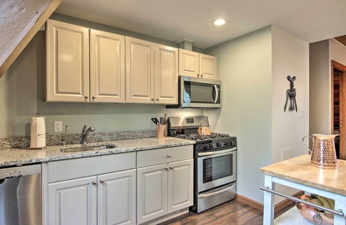 KITCHEN: Stainless steel appliances, granite countertops, dishwasher, Keurig coffee maker, microwave, toaster oven, gas stovetop, tea kettle, spices, dishware & flatware, cooking basics
