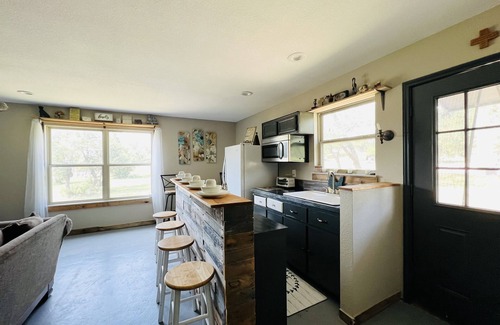 Enjoy the sounds of nature when you stay here. Peaceful living at its finest, but still 10 mins from town. This tiny home features a kitchenette, 2 bedrooms and 1bath. Outdoors features a salt water pool, spa, covered pool pavilion w/ built in fireplace, TV, bbq grills, and outdoor shower. There are fruit trees on the land, roaming chickens and a rooster. The pool is 4 to 8 feet deep. Just 15-20 mins to Fort Cavazos. Just 45 mins to Austin. Come stay and relax.