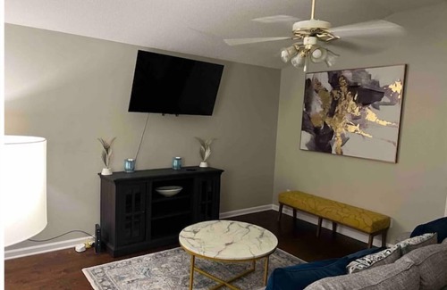 Experience Valdosta in a new way with this charming 3-bedroom, 2-bathroom home near downtown, VSU, Moody Air Force Base, and all of the major shopping centers. Ideal for families or groups of friends, it features inviting decor, unique artwork, and a backyard patio. Amenities include a fully-equipped kitchen, elegant bathrooms with toiletries, and bedrooms with TVs. Enjoy the convenience of being close to local attractions, restaurants, and shops, while also having the privacy of your own home.